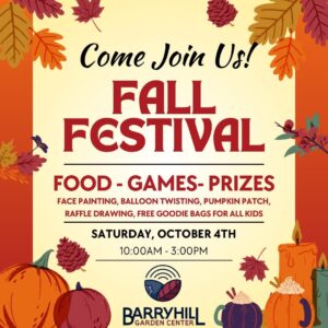 Come celebrate the start of spooky season at the Barryhill Garden Center. In addition to the local vendor market, they have the first pumpkins and chrysanthemums of the season, pumpkin painting station, games, face painting, and more.